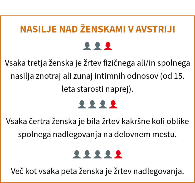 Po mojem mnenju je Avstrija na mnogih področjih uvedla ukrepe, ki naj bi zmanjšali nasilje nad ženskami in dekleti. Tu želim omeniti Zakon o varstvu pred nasiljem (Gewaltschutzgesetz) in kampanjo »Orange the World«. V politiki pa še vedno vidim veliko odgovornost, kar se tiče ekonomskega nasilja. Plače žensk oziroma v poklicih, kjer delajo večinoma ženske, so res nizke. Istočasno to pomeni, da ženske prejemajo nizke pokojnine. Iz ekonomskega vidika torej še vedno obstaja precejšnja nevarnost, da postanejo ženske neposredno odvisne od moža.