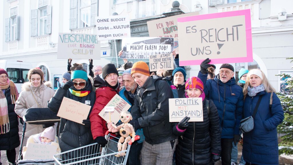 Pod geslom »Bo zdaj tišina ob jezeru?« je skupina umetnikov, kulturnikov in kulturnih delavcev pred celovškim magistratom izrazila svojo izčrpanost, jezo in nejevero. Taka negativna čustva že drugo leto zapored pri koroški kulturni sceni povzroča proračunska neučinkovitost mestnih oblasti. Lani je Celovec dobil proračun sredi julija. Do tedaj je bila v veljavi dvanajstina, t. i. Zwölftelregelung. Gre za ukrep v sili, s katerim smejo izdatki mesta vsak mesec znašati samo dvanajstino celotnega proračuna iz preteklega leta. Ta ukrep je v veljavi tudi letos. Protest sta organizirali interesno združenje kulturnih ustvarjalcev Koroške (IG KIKK) ter interesno združenje za ples, gledališče in performans (IG TTPKK).