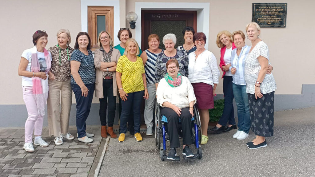 Na sliki z leve: Elsi Maloveršnik (por. Hribar), Brigitte Zelloth (Rainer), Riedl Gitka (Sima), Ludwiga Zučič (Hornböck), Roswitha Bachler (Seeger), Hermina Čajčman (Bratscher), Sieglinde Jernej (Kordesch), Marica Linče (Petek), Marija Gomernik (Martl), Anica Zablatnik, Gertrud Legvart (Duller), Dragica Krištof (Reckar), organizatorka Olga Pandel (Sperl), Elsi Kanzian (Ibounig/v vozičku).